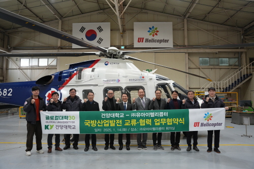 건양대-㈜유아이헬리콥터, 국방산업발전 교류 및 협력위한 업무협약 체결 건양대학교(총장 김용하)는 14일 충남 예산 ㈜유아이헬리콥터(대표 임성의)를 방문해 국방산업발전과 건양대 글로컬대학사업(K-국방산업 선도대학) 구현을 위한 교류 업무협약을 체결했다고 밝혔다. 이날 협약식에는 건양대 최임수 부총장 겸 글로컬사업추진단장과 홍영기 산학협력단장, 손승호 전략기획본부장, 이걸재 교육혁신본부장, 최명진 K-국방산학지원본부장, 유의진 산학지원팀장과 ㈜유아이헬리콥터 임성의 대표, 정웅채 상무, 이종철·김성배 이사, 박상준 팀장 등이 참석했다. 건양대와 ㈜유아이헬리콥터는 이날 협약체결을 통해 ▲국방 과학기술분야 연구·역량강화를 위한 기술교류 협력 ▲유·무인 항공분야 산·학 공동연구개발 사업화 협력 ▲무인항공 MRO분야 제도 및 개발분야 협력 ▲방위산업 분야 우수인재 채용 계약학과 개발 상호협력 ▲유·무인 항공분야 시험·인증·실증을 위한 상호협력 등에 협력하기로 했다. 이날 협약식에 참석한 최임수 건양대 부총장과 임성의 유아이헬리콥터 대표는 “오늘 협약을 계기로 양 기관 사이 국방과학기술분야 및 유·무인 항공분야의 활발한 교류와 협력을 통해 대한민국 국방산업을 발전시키는 또 하나의 원동력이 될 수 있도록 노력하겠다”고 밝혔다. 건양대는 지난해 8월말 '글로컬대학30 사업'에 선정돼 ‘지역과 함께 세계로, K-국방산업 선도대학’ 이라는 비전으로 ▲국방산업 중심의 지역발전 선도대학 ▲학생 중심의 국방융합인재 양성대학 ▲세계와 지역을 잇는 글로컬 대학 등을 목표로 내세워 다양한 사업을 추진하고 있다. |