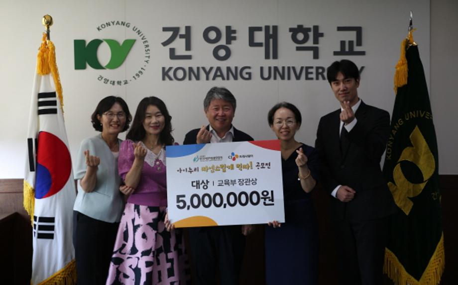 건양대학교(총장 김용하) 아동교육학과가 위탁운영하고 있는 정부세종청사 윤빛어린이집이 CJ프레시웨이와 한국어린이집총연합회가 개최한 제3회 아이누리 ‘자연스럽게 먹자’ 공모전에서 식습관 교육프로그램 ‘음식작사 놀이작곡’으로 단체 부문 대상을 받았다.