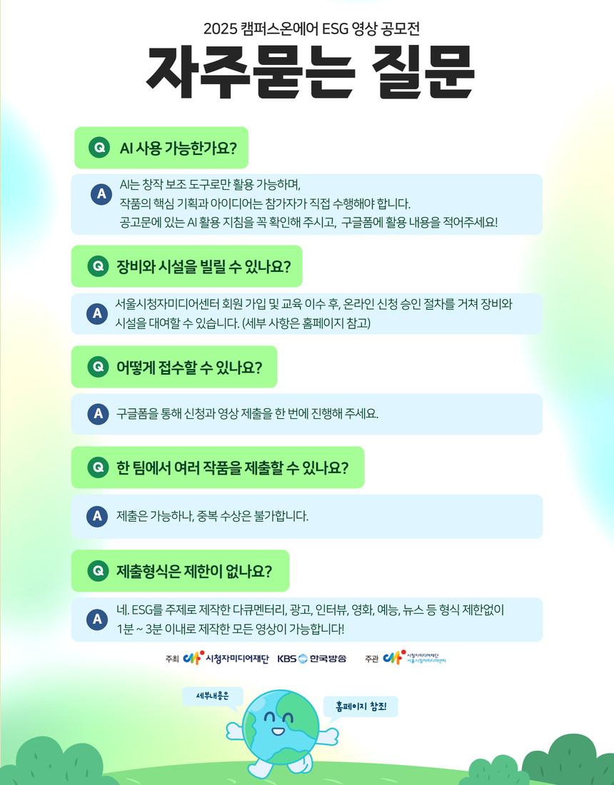 | 제목 | KBS-시청자미디어재단 공동주최 <2025 캠퍼스온에어 ESG 영상 공모전> | ||||